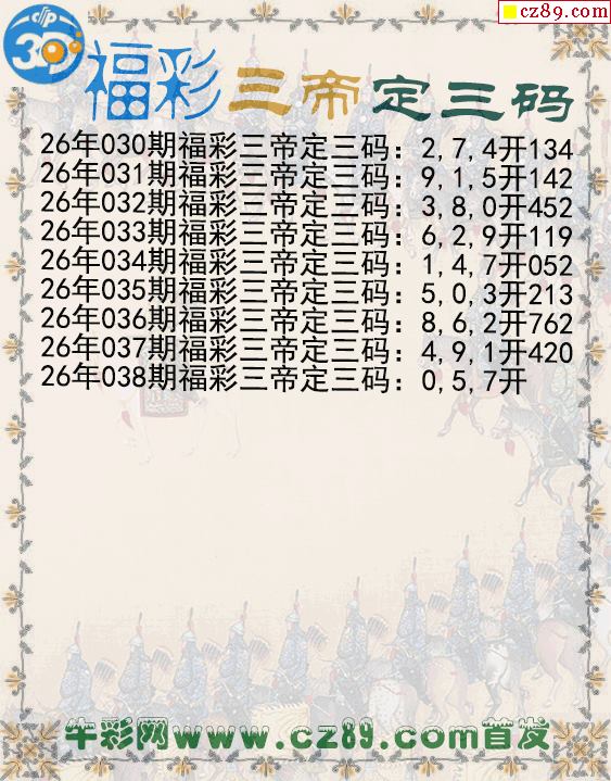 福彩三帝定三码038期3d图谜
