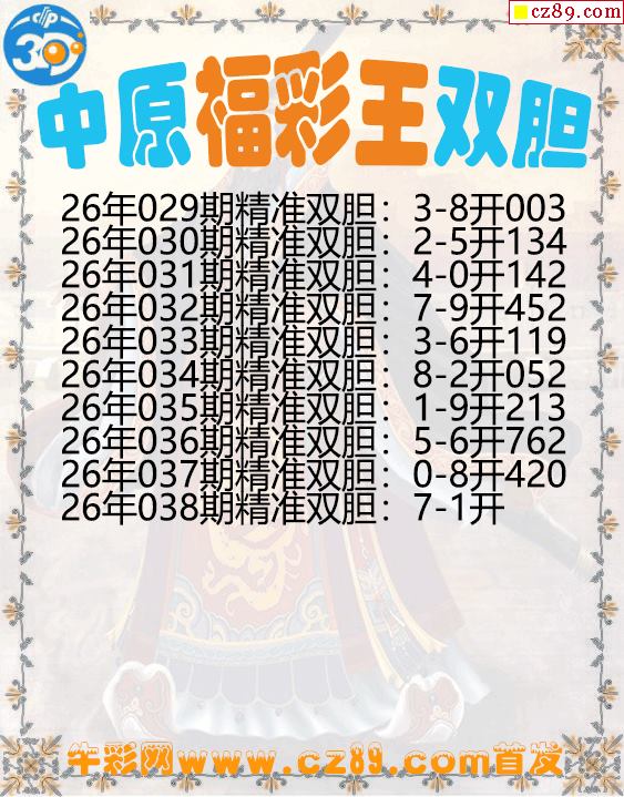 中原福彩王双胆038期3d图谜