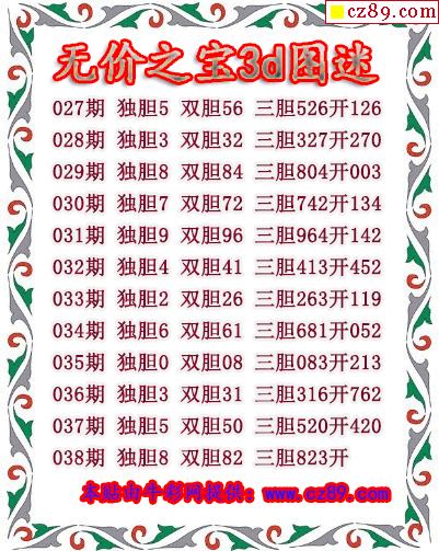 无价之宝送胆2026038期3d图谜(原创)