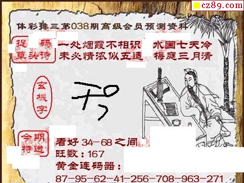 26年体彩P3038期 茶城沧江图谜