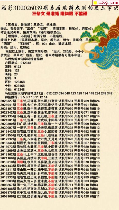 马后炮解26年039期3d太湖钓叟之 不能碰