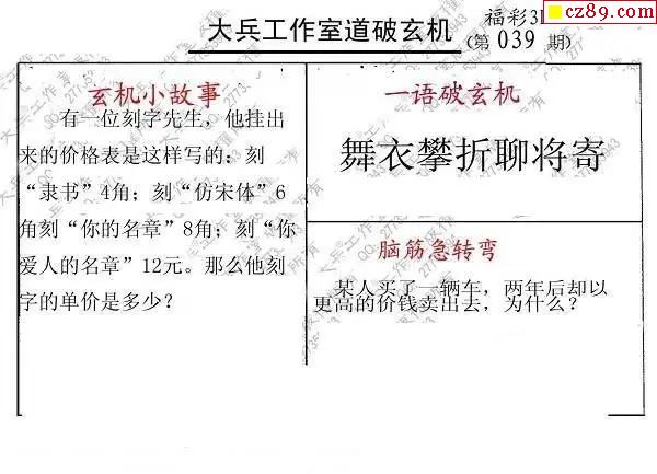 039期 彩吧彩报字谜版