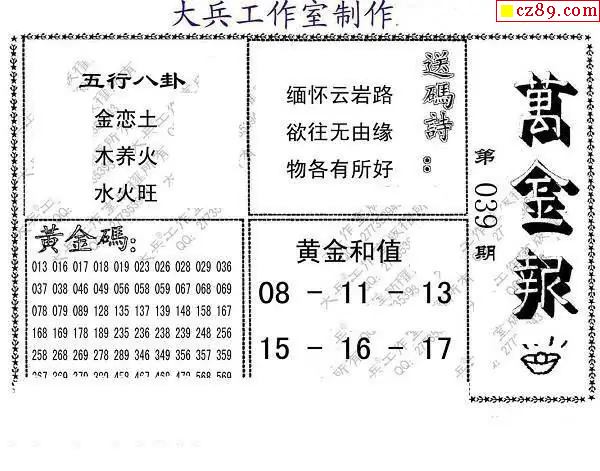 039期 彩吧彩报预测版