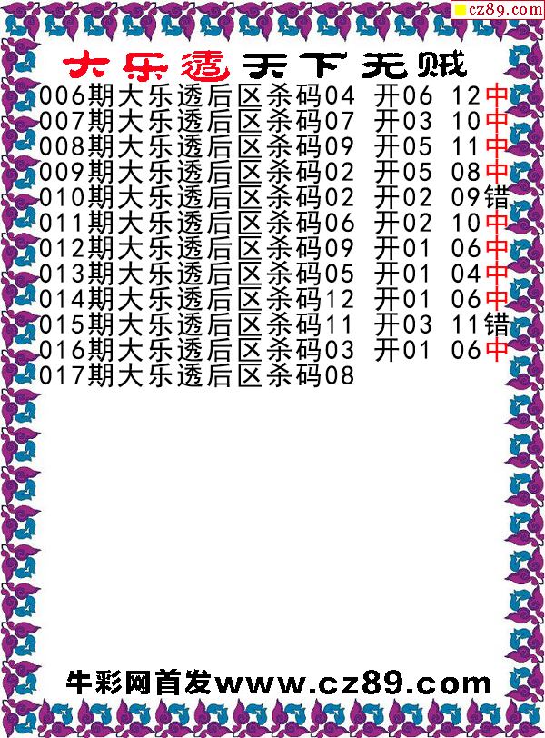 大乐透2026017期天下无贼后区杀号图谜 ...
