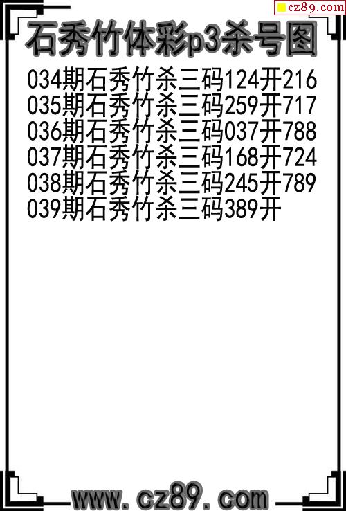 26年039期石秀竹体彩p3杀号图