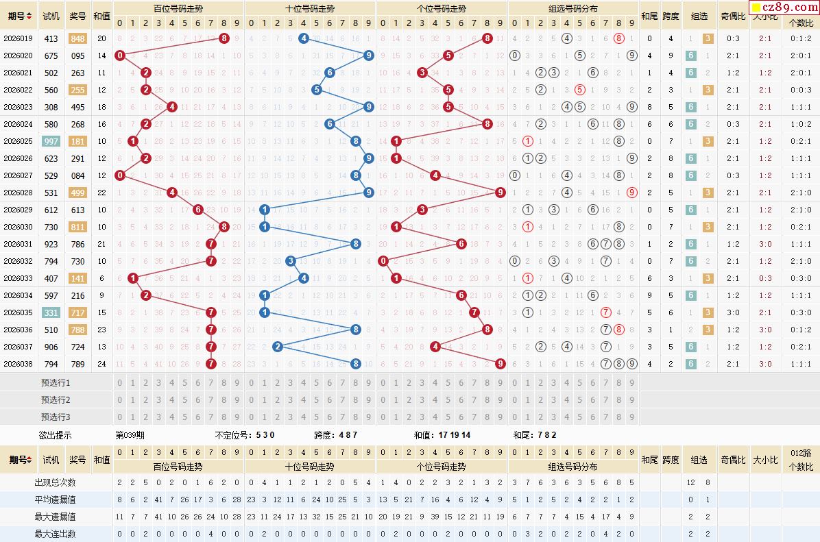 039期体彩排列3近期历史号码图表