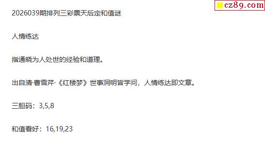 体彩排三2026年039期 武当玉女掌门一句定三码