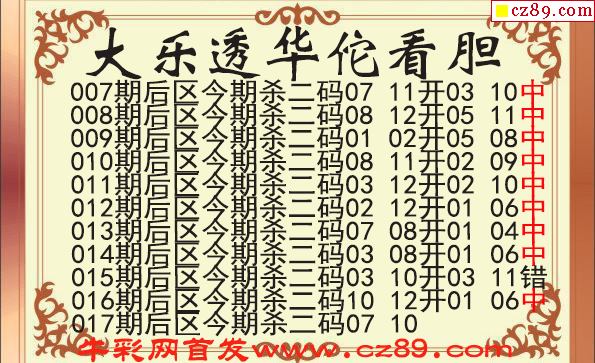 大乐透2026017期华佗看胆后区杀二码图谜 10中9