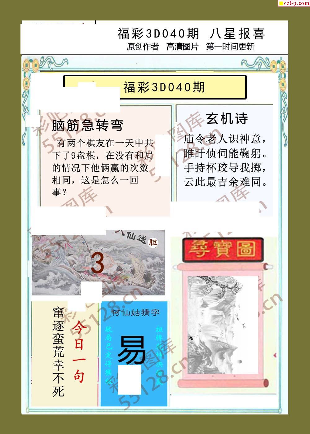 八星报喜26年040期福彩3d画谜