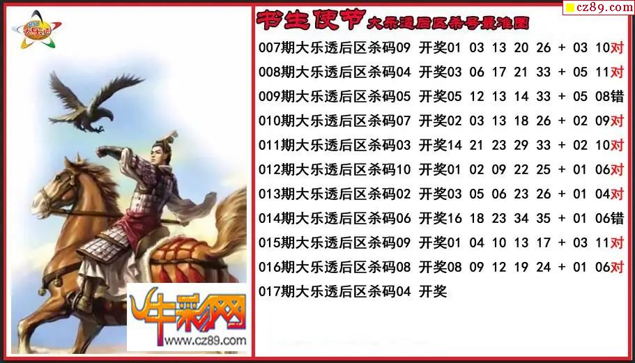 大乐透017期书生使节后区杀号更准图