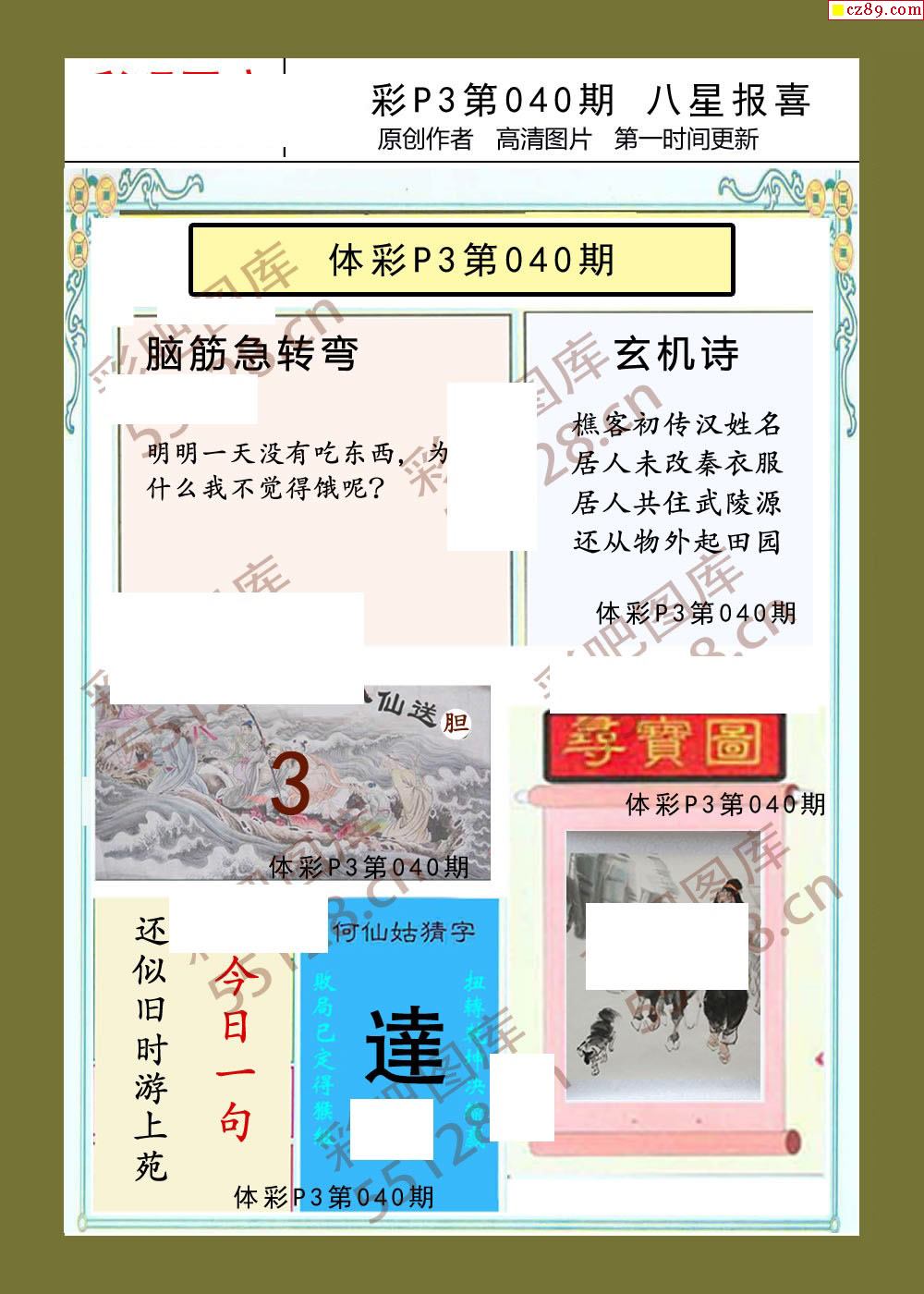 八星报喜040期体彩p3图谜