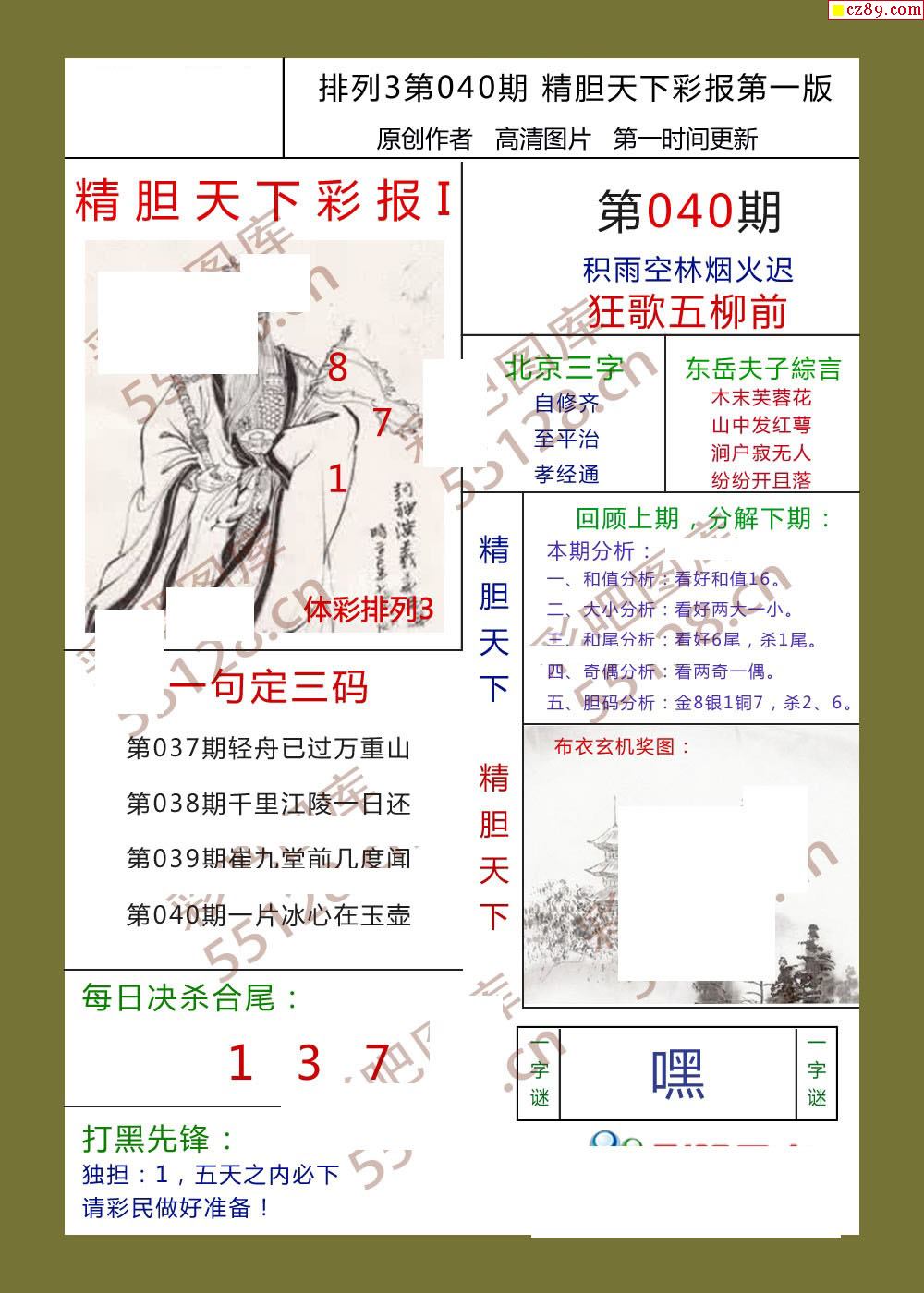 2026年040期牛彩网体彩P3画迷图谜汇总分享