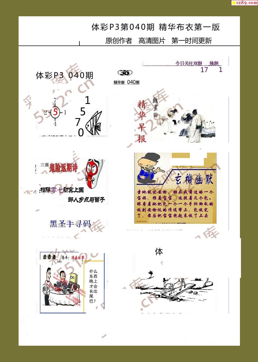 精华布衣彩报040期体彩p3图谜