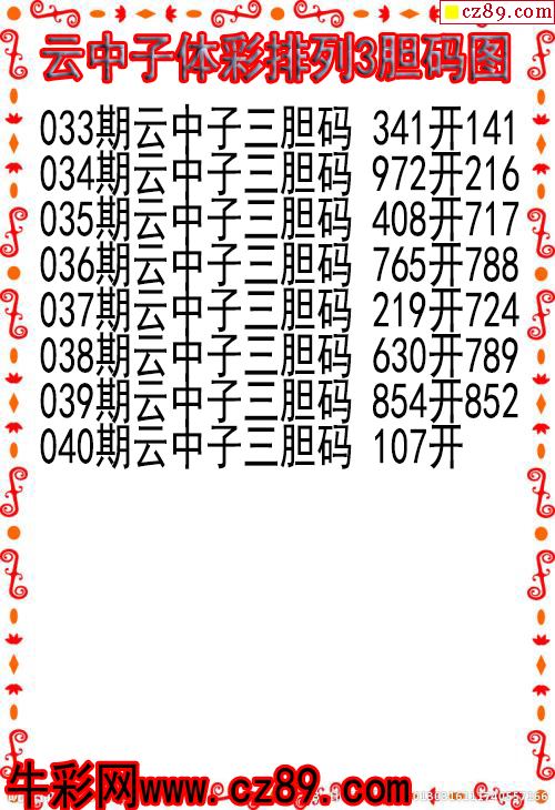 26年040期云中子体彩排列3胆码图
