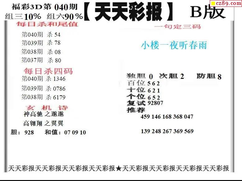 福彩3D2026040期天天彩报A版 天天彩报B版
