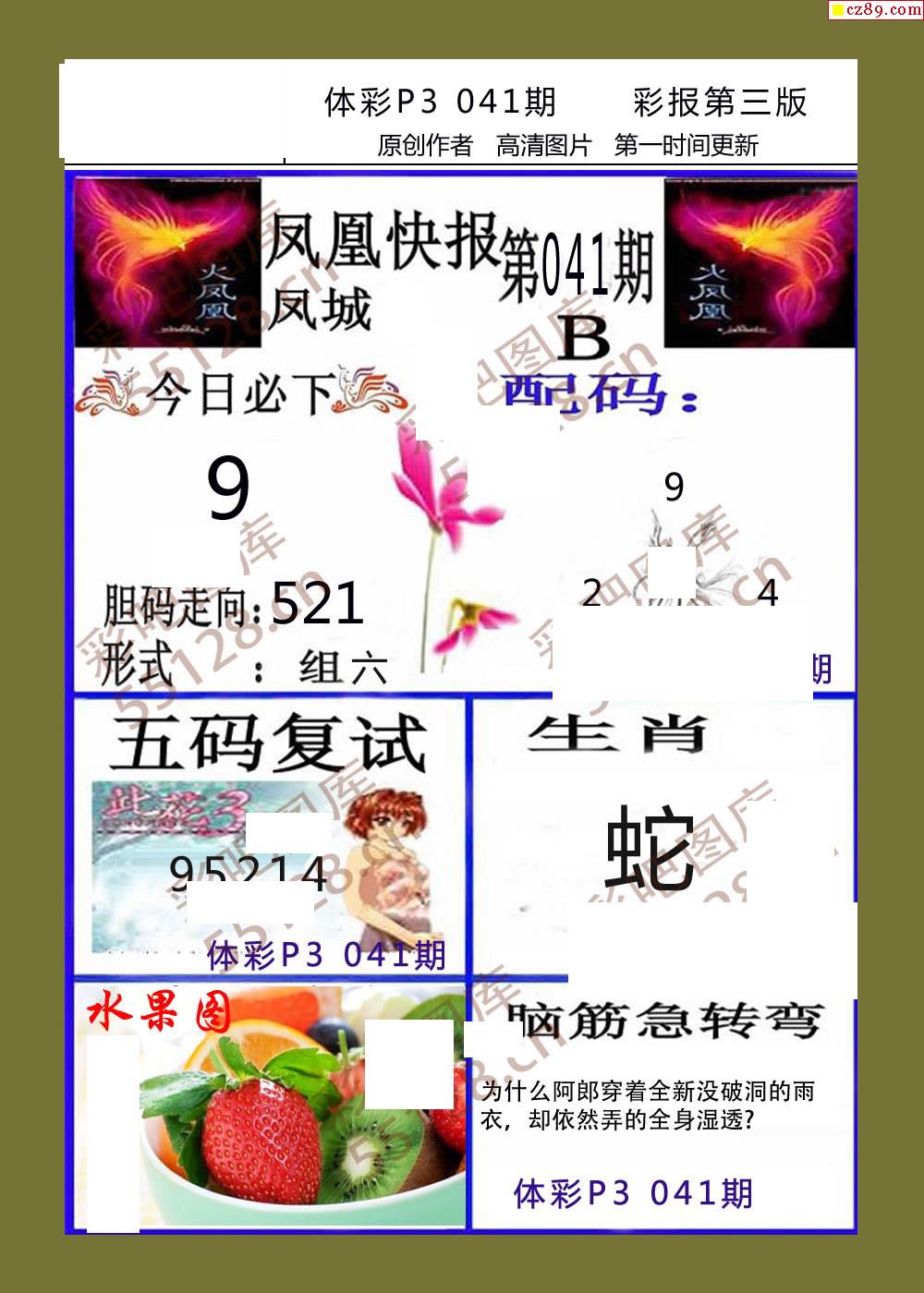 香岛彩报041期体彩p3图谜