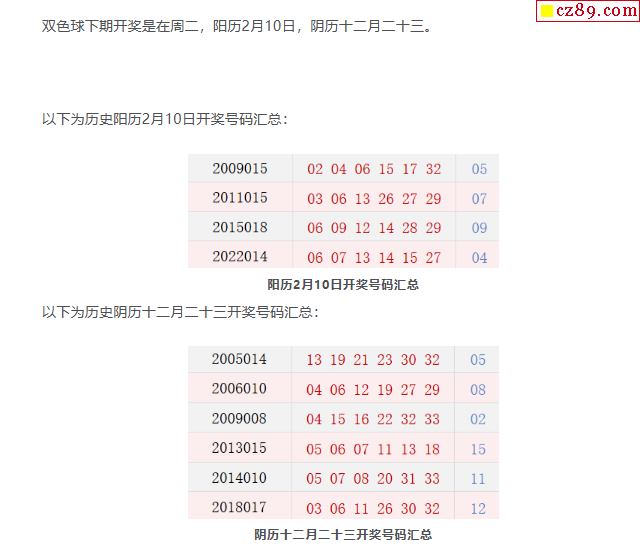 历史上的今天双色球2月10日开奖号码汇总