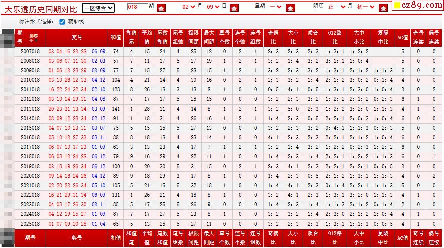 018期大乐透历史同期对比图