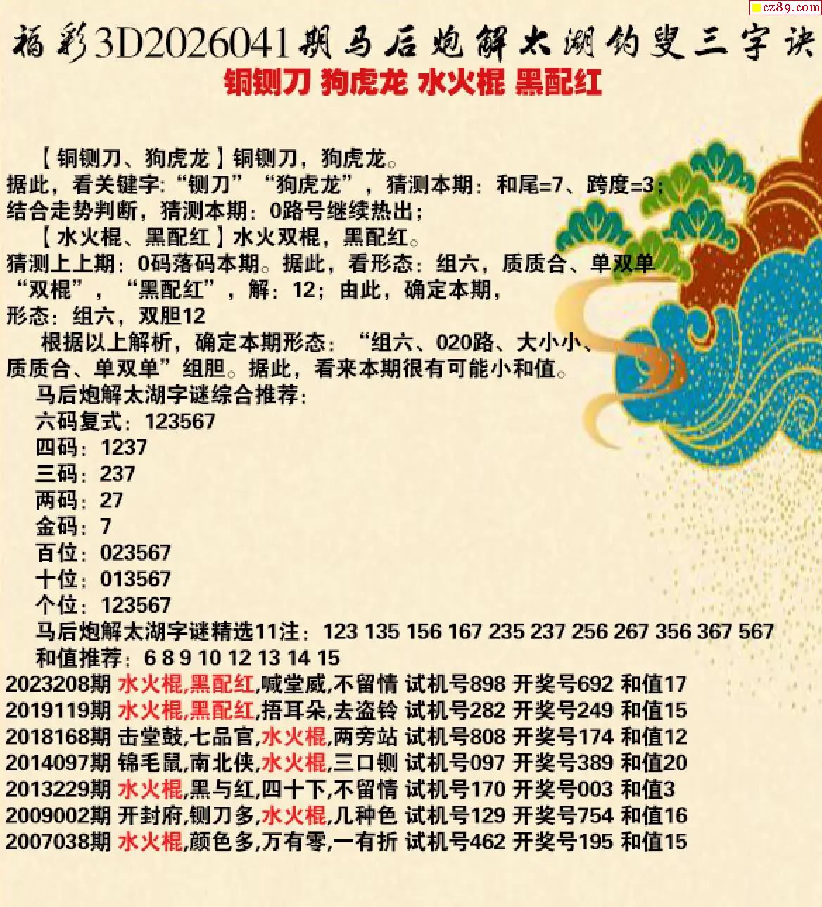 马后炮解26年041期3d太湖钓叟之 黑配红