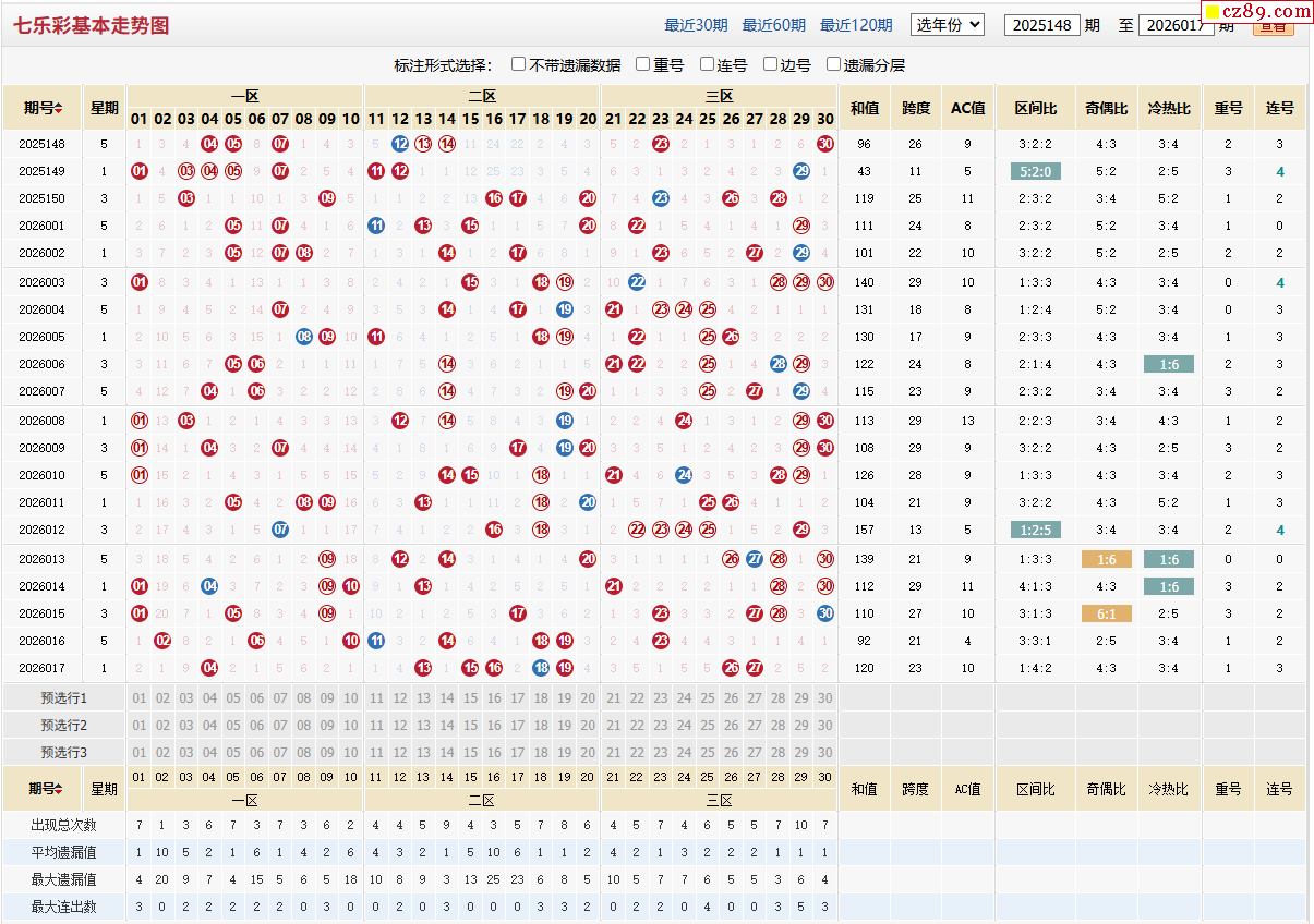 七乐彩基本走势图