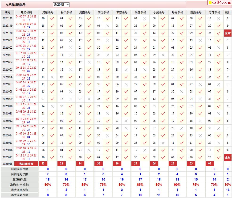 七乐彩018期 彩宝贝专家杀号码预测图表