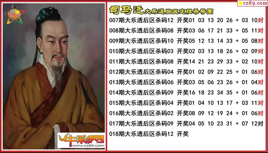 大乐透018期司马迁后区定胆杀号图