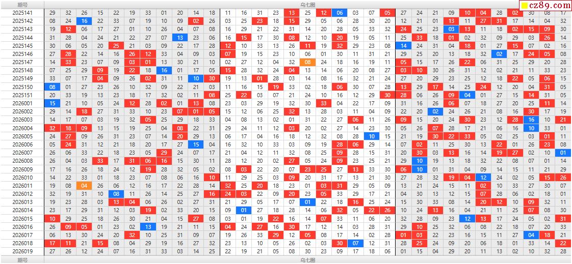 26年福彩双色球019期乌七图表