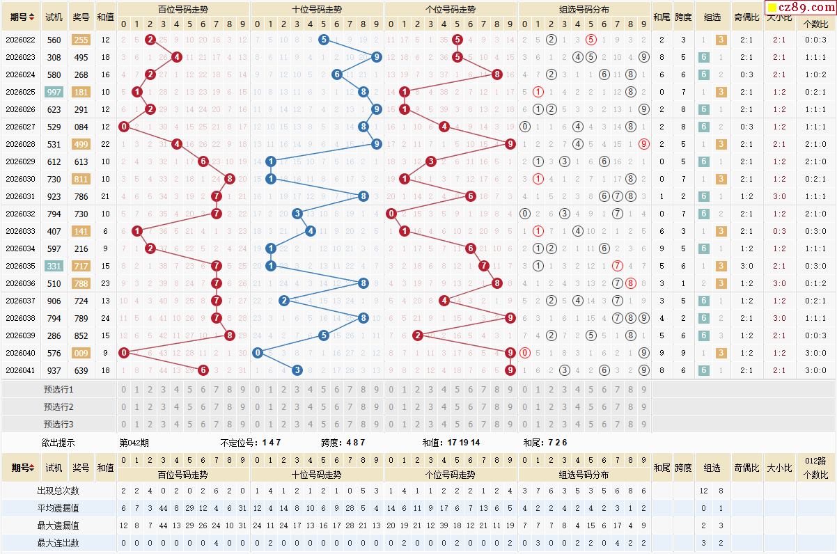 26年042期彩宝贝专家体彩P3杀号定码图表