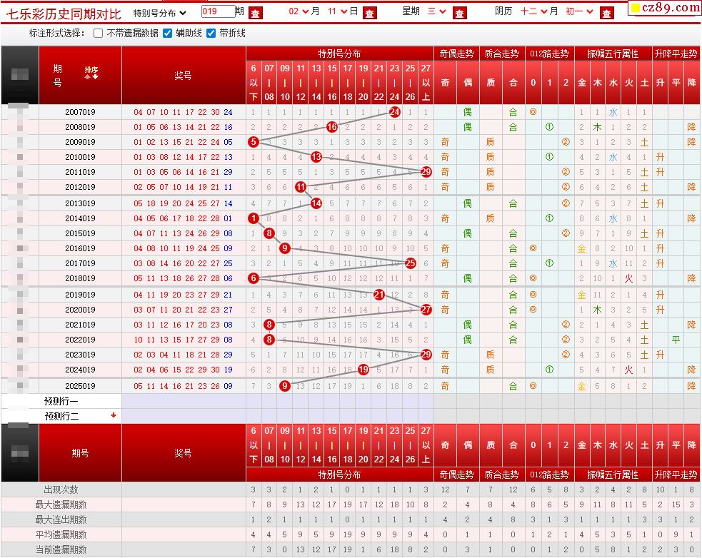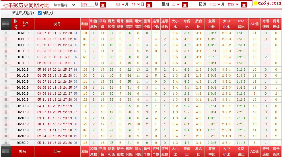 019期七乐彩历史同期对比图
