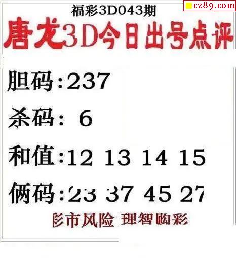 唐龙点评2026043期3d图谜