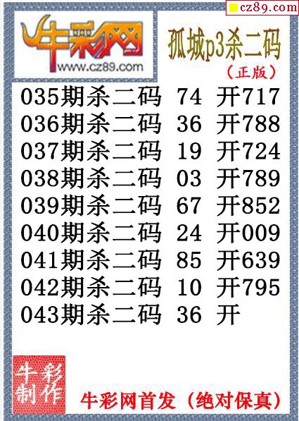 26年043期公孙宇P3杀码图