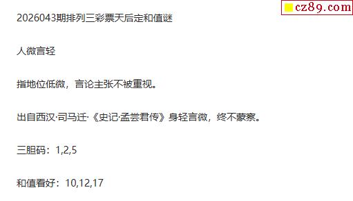 体彩排三2026年045期 武当玉女掌门一句定三码
