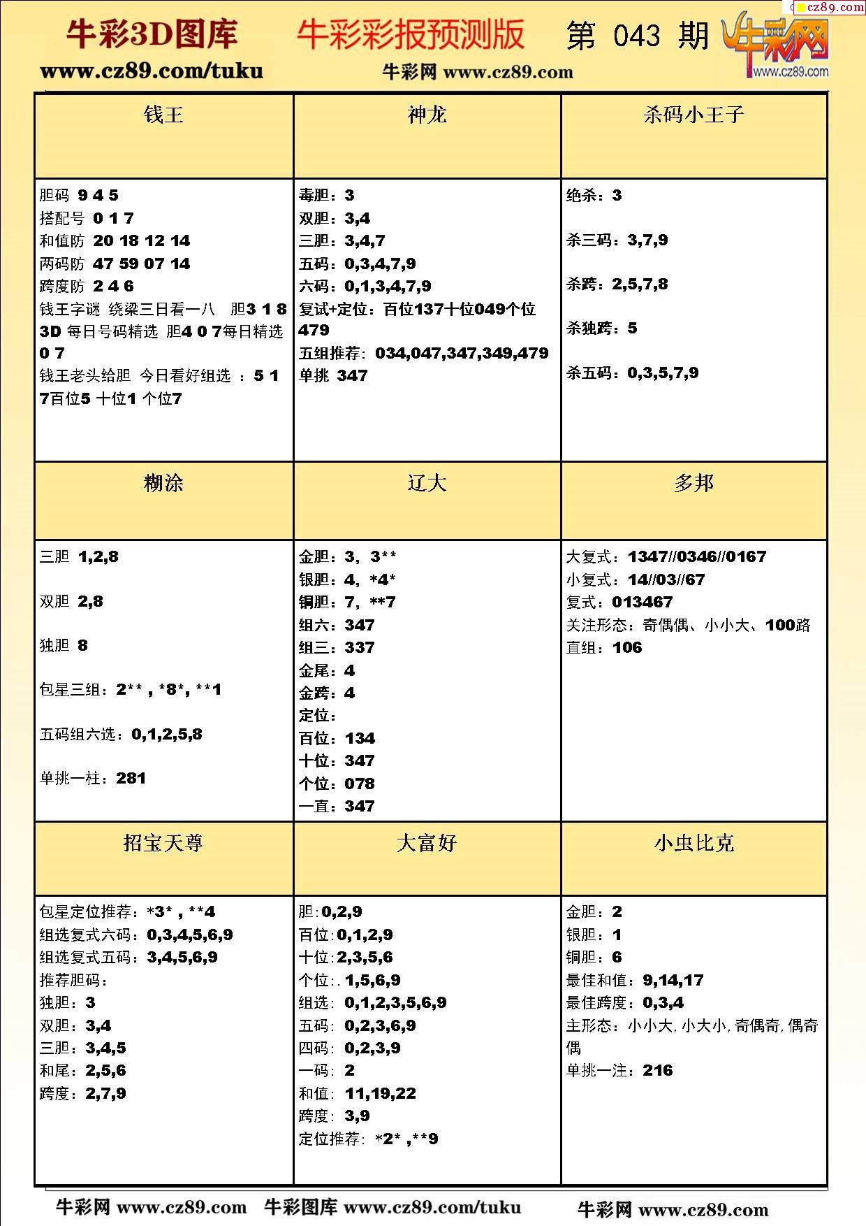 043期福彩3D开机号406对应码018牛彩关注数248金码7