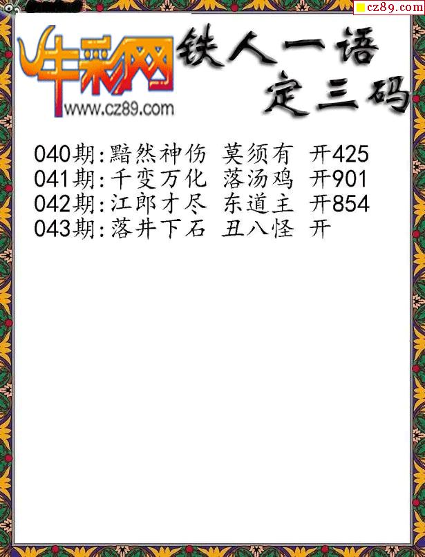 牛彩版3D字谜彩报图26年043期打印版