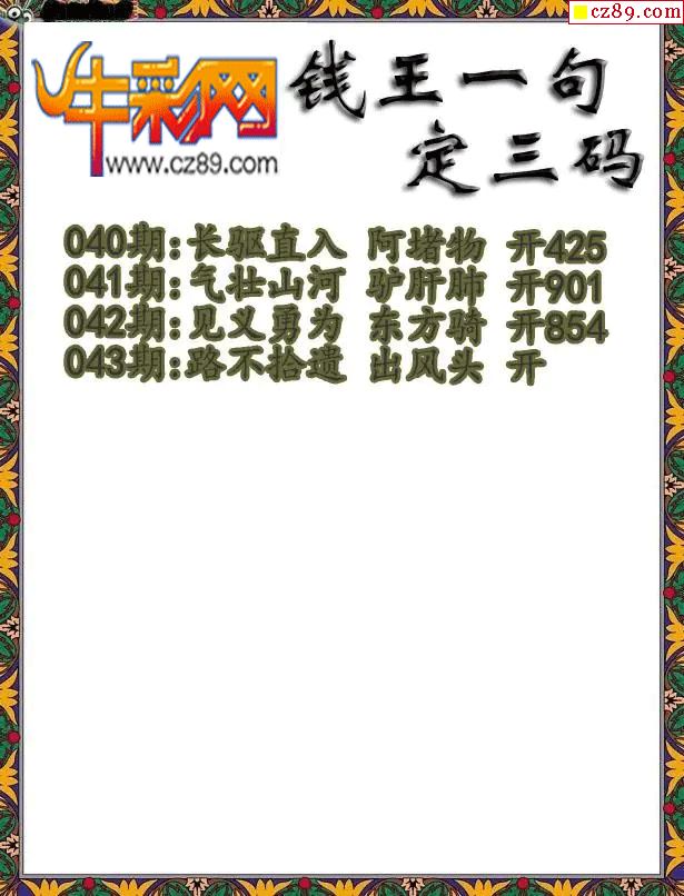 2026044期牛彩专家一句定三码彩报