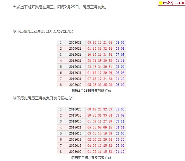 历史上的今天大乐透2月25日开奖号码汇总