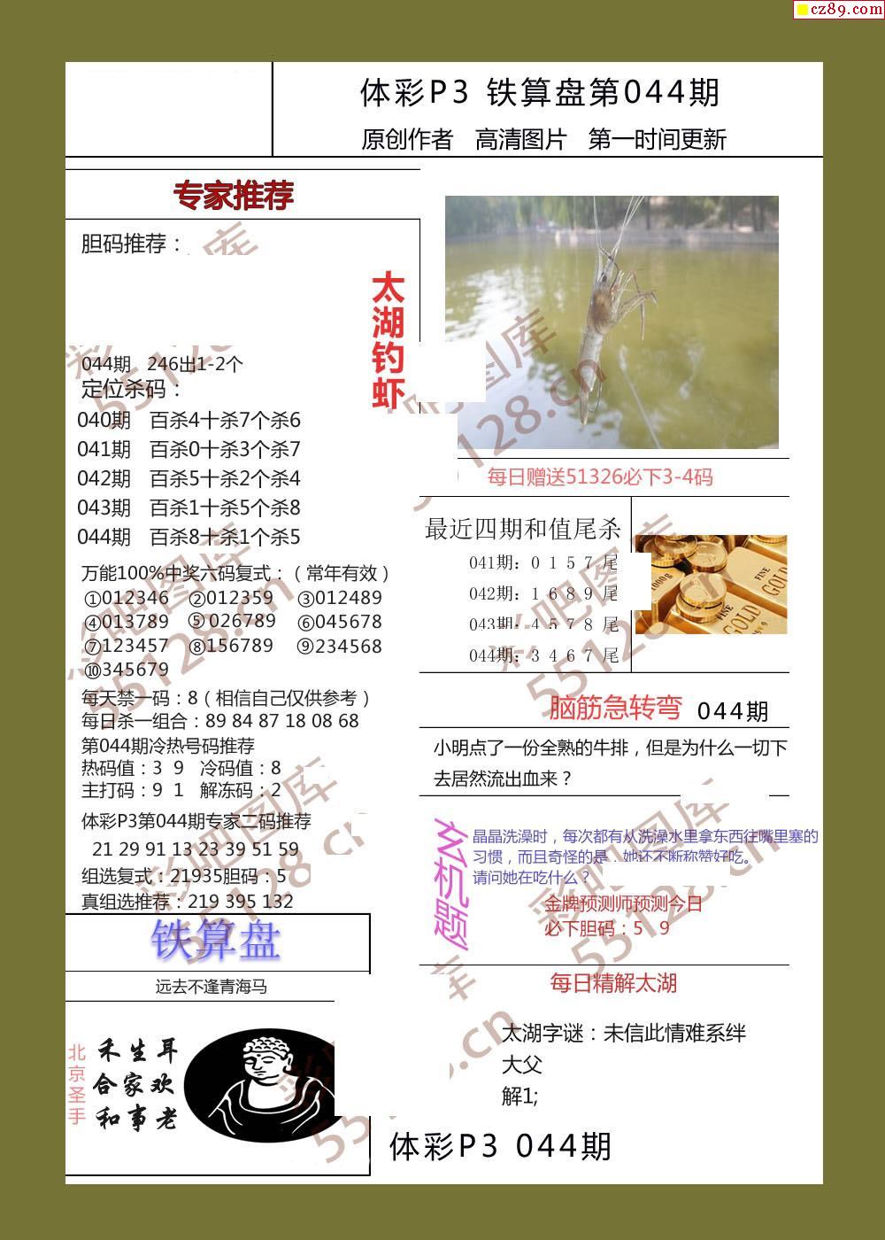 铁算盘044期体彩p3图谜