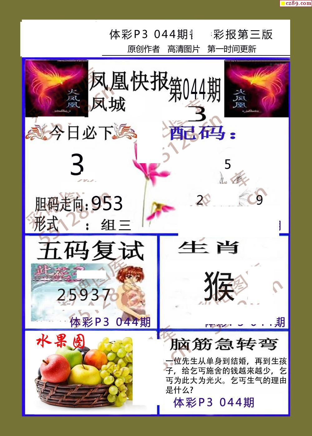 2026年044期牛彩网体彩P3画迷图谜汇总分享