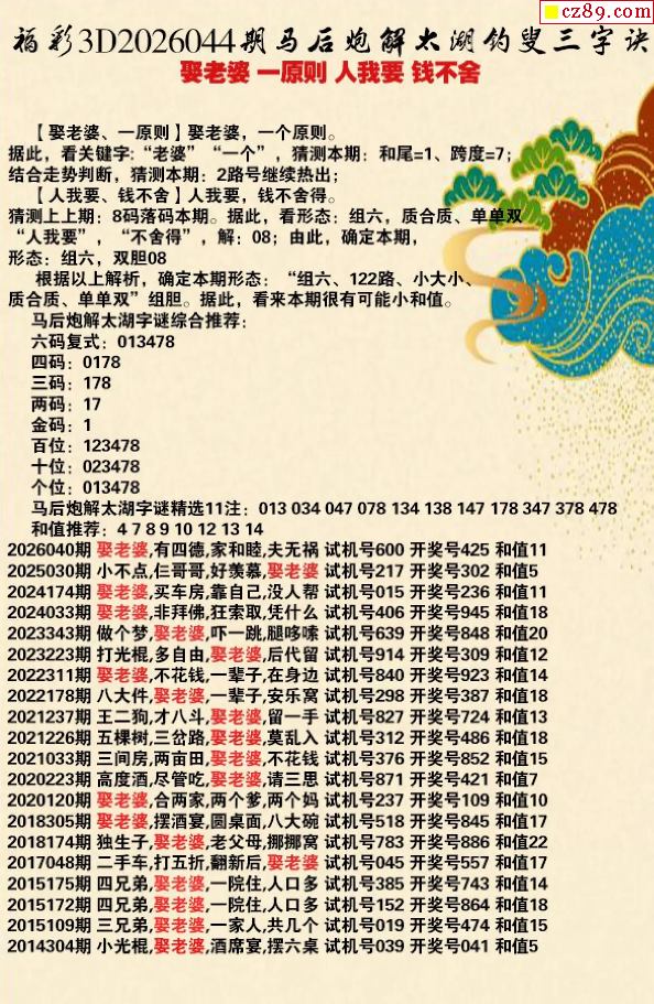 马前屁解26年044期3d太湖 钱不舍