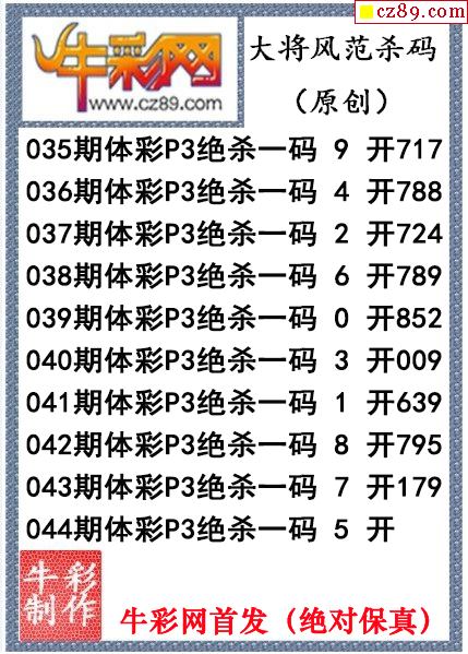 26年044期公孙梦体育彩票P3杀码图