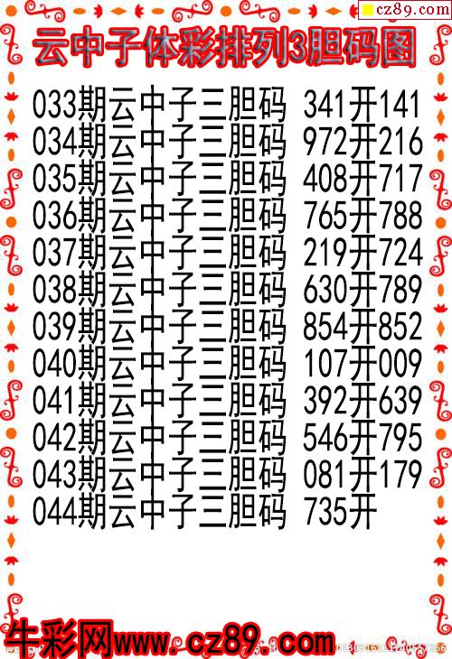 26年044期云中子体彩排列3胆码图
