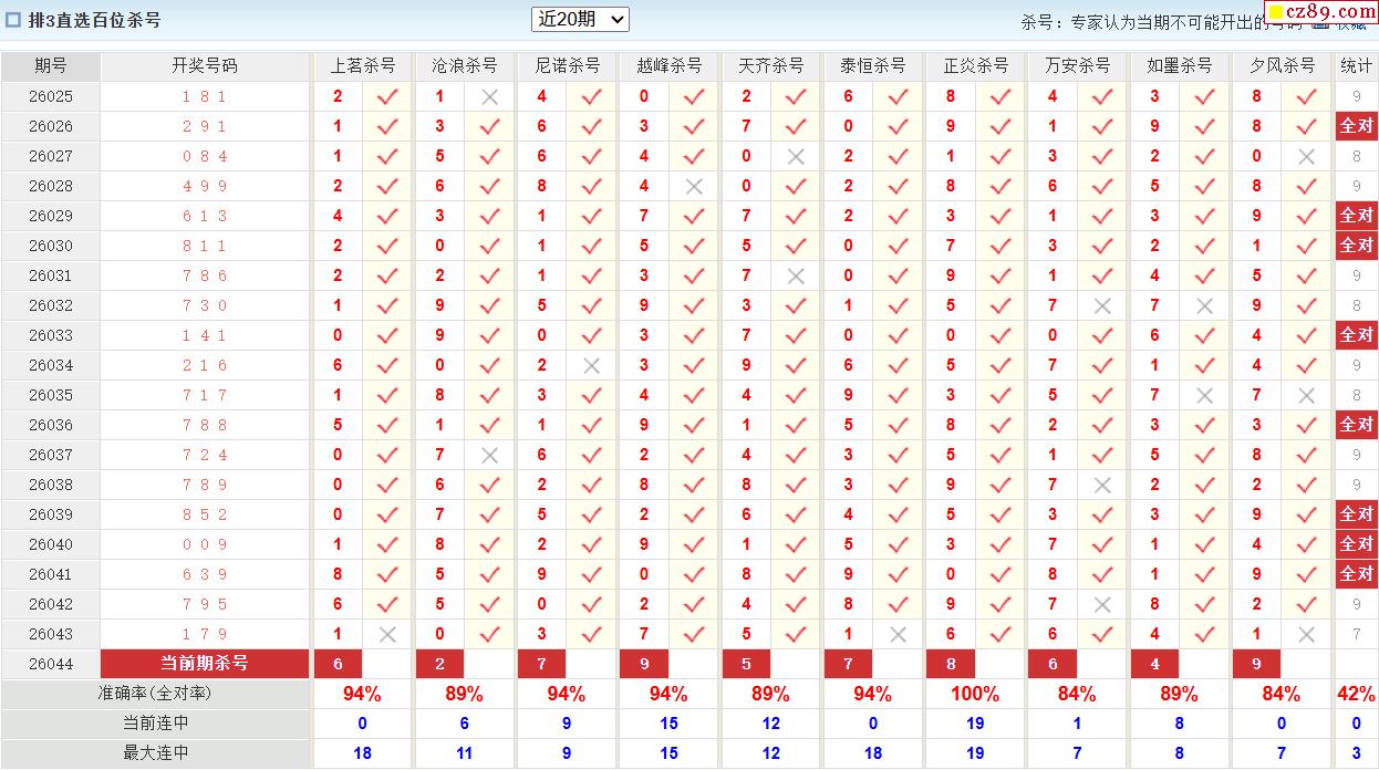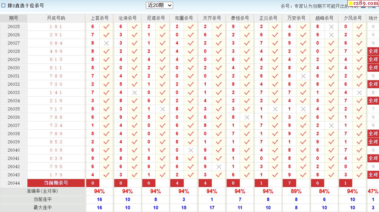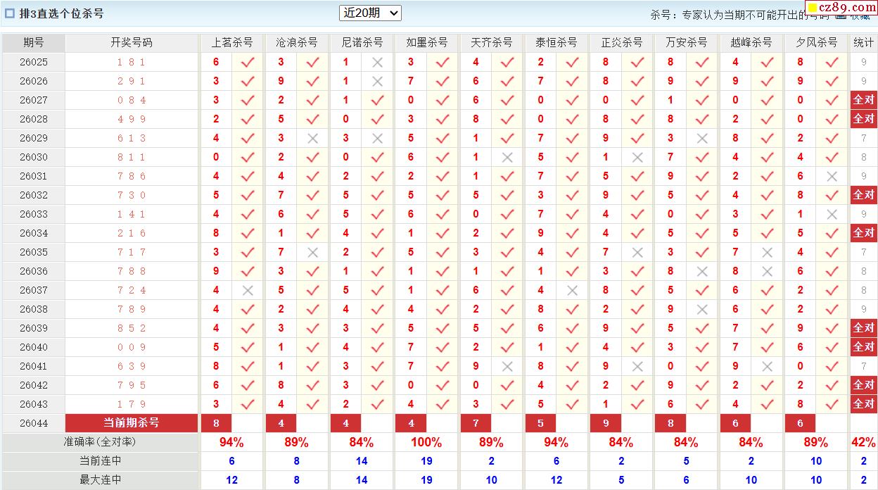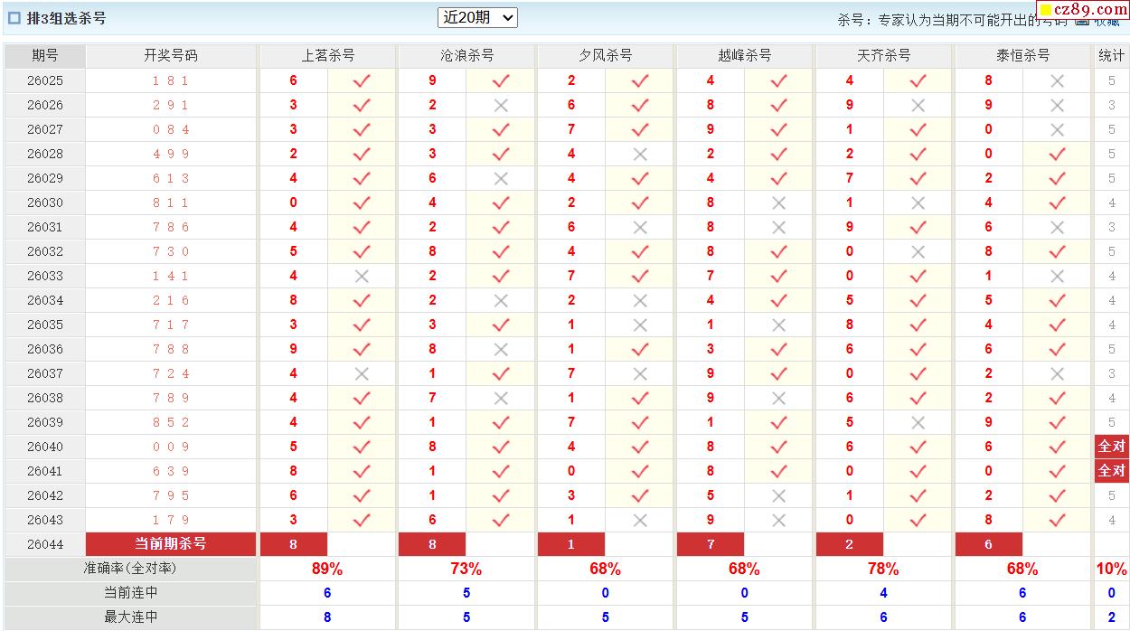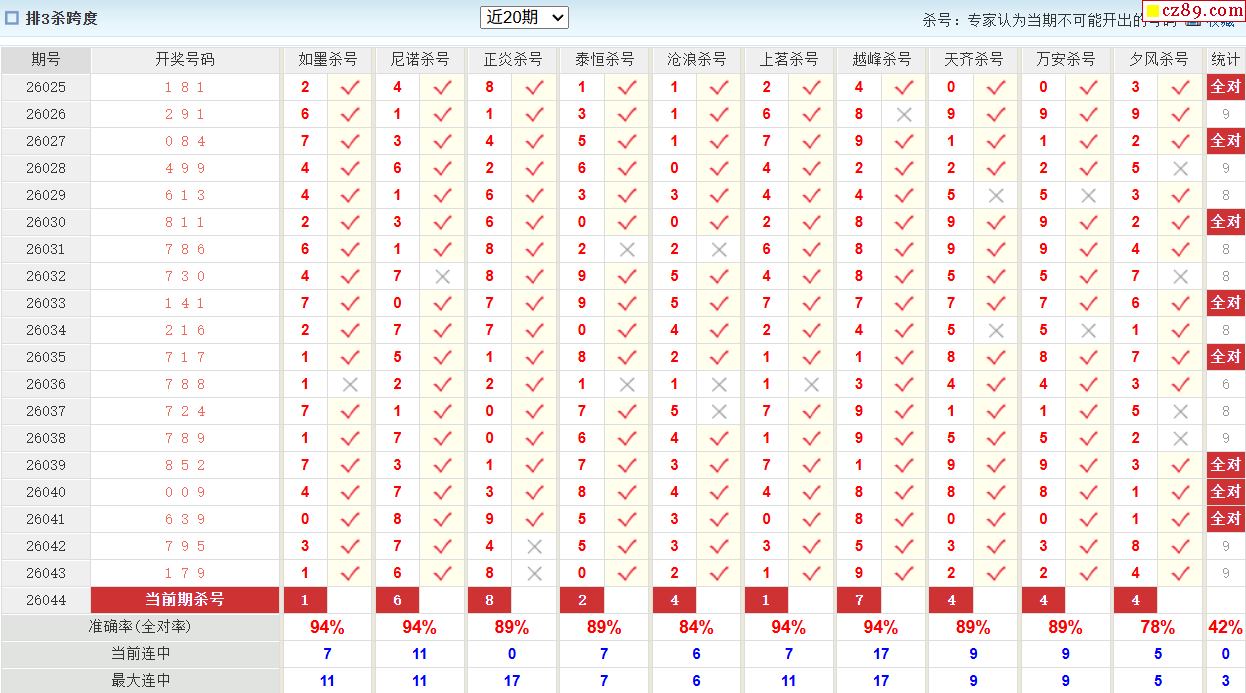 26年044期澳客专家体彩P3杀号定码推荐