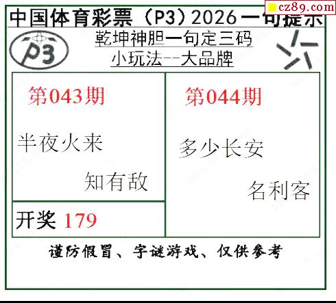 乾坤一句定三码26年044期P3图谜
