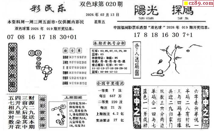 峨眉道姑杀蓝号020期双色球图谜 10中8