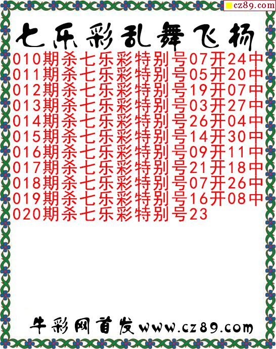 七乐彩2026020期流光岁月杀码图谜 10中4