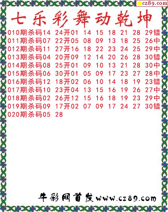 七乐彩2026020期流光岁月杀码图谜 10中4
