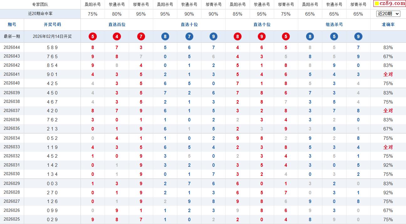 26年045期彩宝贝专家福彩3D杀号定码图表