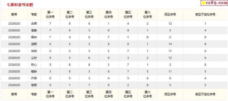 2026年020期七星彩 王牌杀码分析