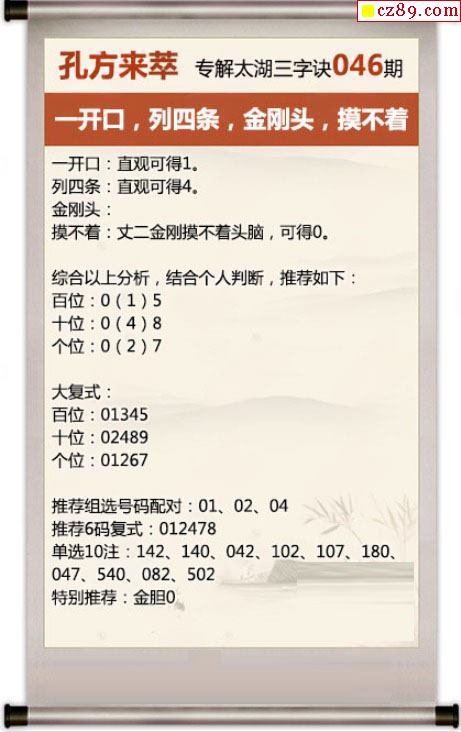 26年046期东山省3d太湖三字诀