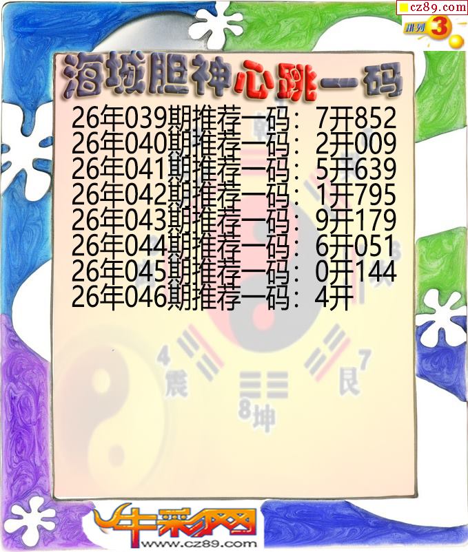 海城胆神心跳一码046期体彩P3图谜